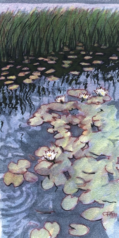 Jag gillar näckrosor. Finns det inte alldeles för lite flytande blommor? Det härligaste som finns är nästan att paddla eller ro in i Svartsjöviken och glida runt i bland bladen och blommorna och titta på alla små blå trollsländor som flyger omkring. Jag kallade dem för "polishelikoptrar" när jag var liten.