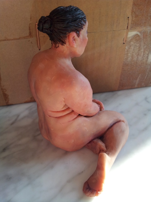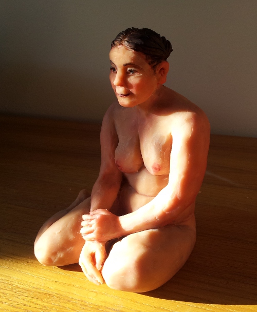 KB75 har satt igång igen med modellsessioner på söndagar och jag har just avslutat en skulptur av modellen Rosa. Den här gången arbetade jag inte med stengodslera utan med Super Sculpey. Sculpey-lera är inte lera egentligen utan en polymerbaserad massa som kan härdas i vanlig ugn vid 130 grader celsius. Det är ungefär samma sak som Cernit, men Super Sculpeyn är mycket mjukare att arbeta med. Den är svenne-hudfärgad och en liten aning transparent så den funkar bra att skulptera människor med.