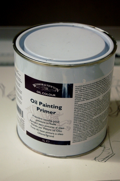 Oljebaserad primer däremot bildar en tät hinna som färgen lägger sig ovanpå. Konstigt nog har jag inte lyckats få tag på oljeprimer i Sverige, så det blev till att att beställa från England.