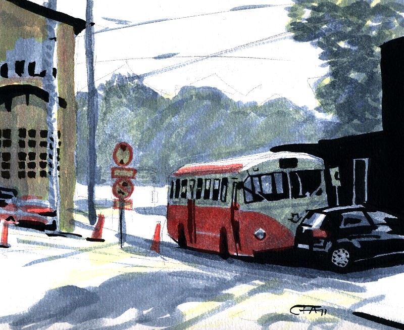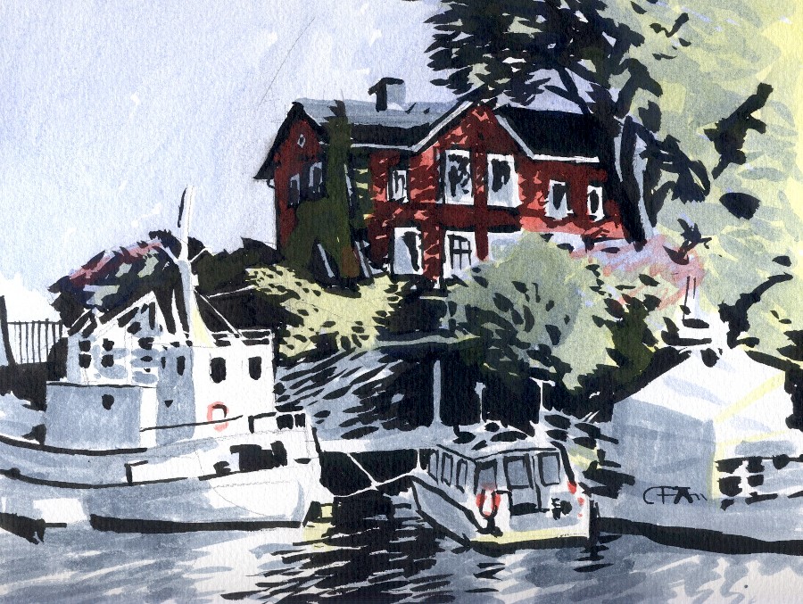 akvarell bil Stockholm till sjöss