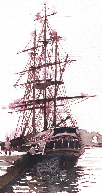 Just nu ligger det en replik av HMS Bounty vid Skeppsbron. Fartyget är från filmen Myteriet på Bounty med Marlon Brando.