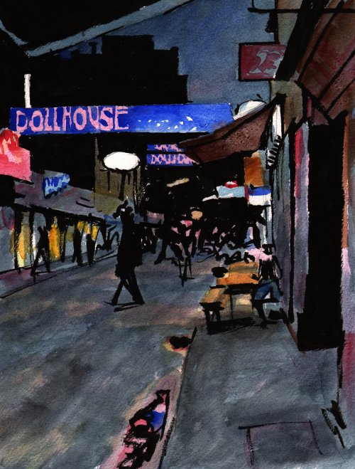 Große Freiheit, där Beatles spelade en gång i tiden. Tanten på det sunkiga ölhaket svor när jag betalade ölen med en tjugoeurosedel.
