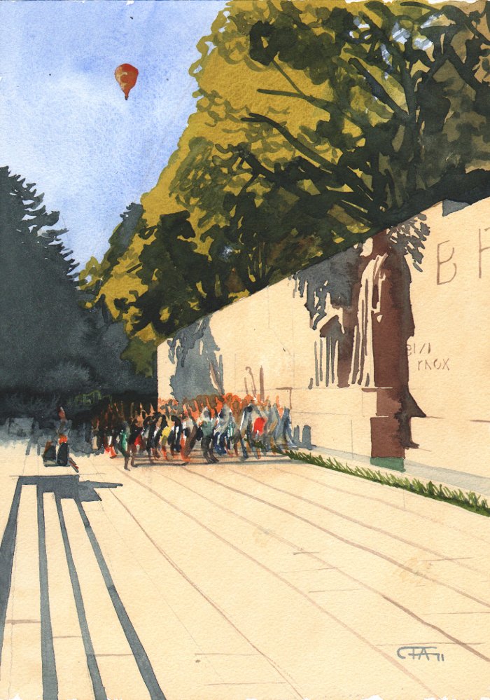 Ibland, i Genève, bryter folk ut i sång och dans bara sådär. Och ballongen flög faktiskt förbi i bakgrunden.