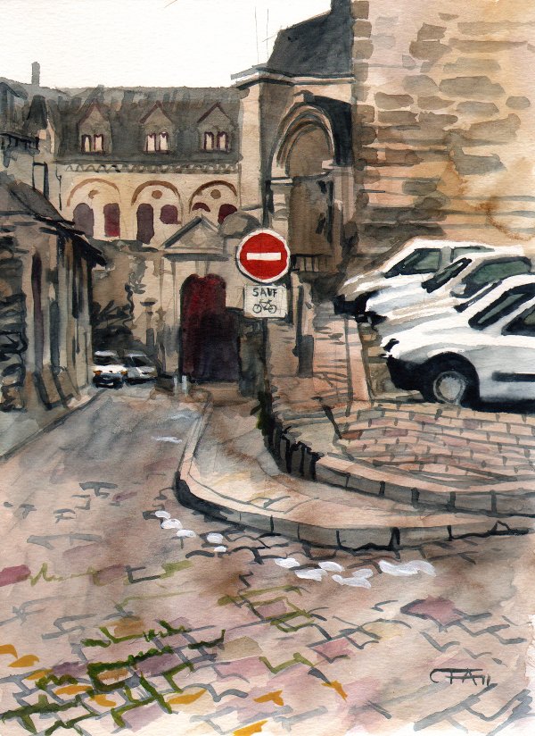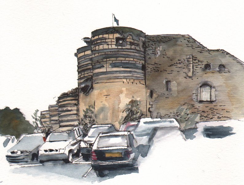 Efter två veckors tågluff kom jag till slut fram till min slutdestination, Angers (hör uttal), där jag skulle gå en målarkurs. Jag kom fram ganska tidigt på förmiddagen, så jag tog en promenad i staden och målade lite. Av säkerhetsskäl fanns det inga förvaringsboxar på stationen, så jag fick släpa runt på all min packning. (Kunde ha lämnat den på turistbyrån fick jag veta senare.) I Marseille hade de förvaringsboxar, men för att komma in till dem fick man gå genom en säkerhetskontroll ungefär som på flygplatsen.
