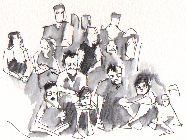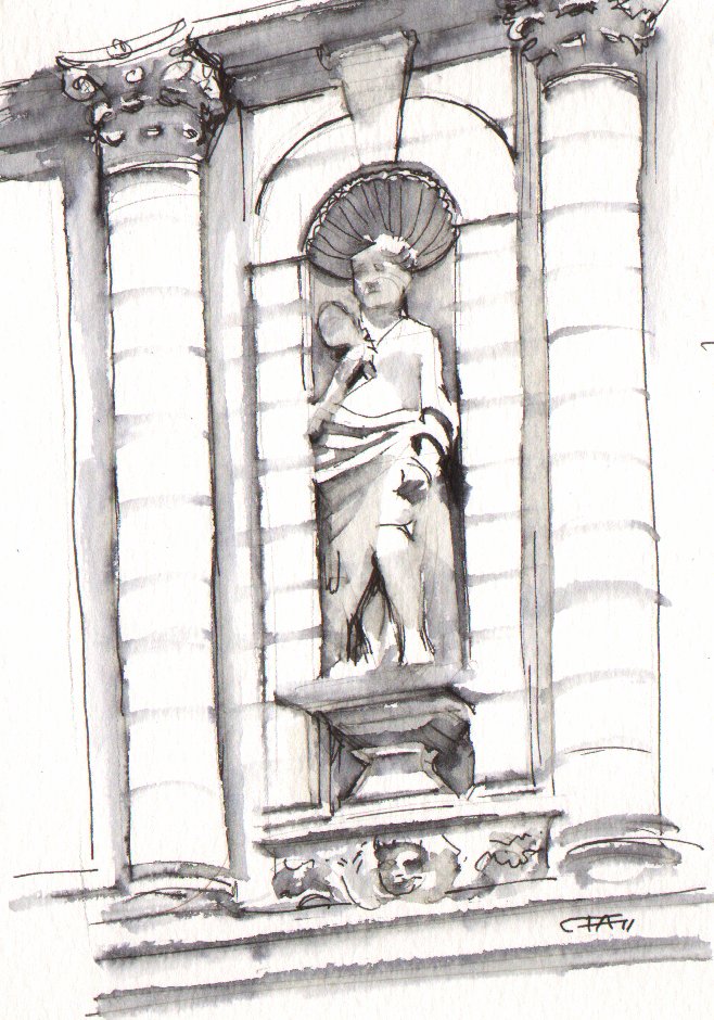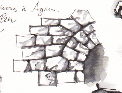 Det är en teknik som funkar utmärkt för att teckna stenväggar, eller varför inte statyer på fasaden på Hôtel de Ville de la Rochelle: