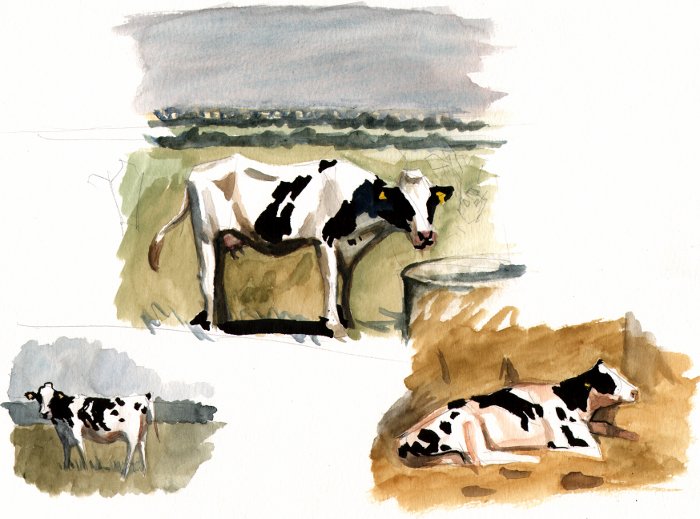 Omgivningarna var lantliga, med vinodlingar och kohagar. Man kan bara måla en kossa i taget, annars blir det bara ett svartvitt mönster.