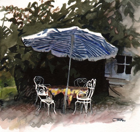 Under parasollet under fikonträdet satt vi och åt hemgjord majonäs.