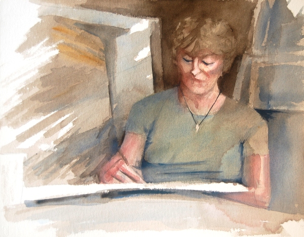 Eva målar av mig.