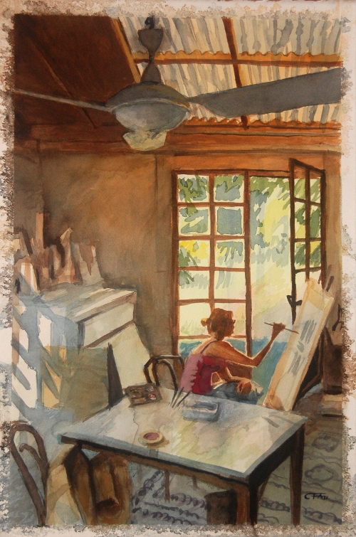 Rebecka i ateljén.