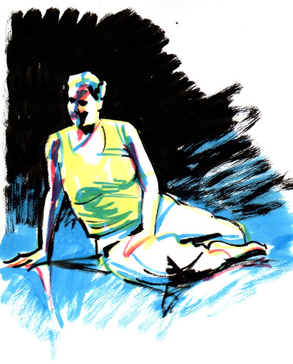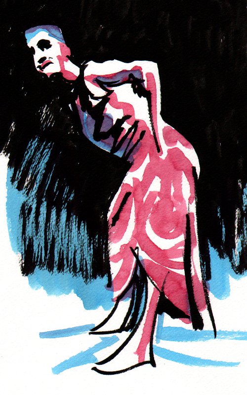 Tuschen är transparent och torkar fort. Det är nästan som att måla med överstrykningspenna.