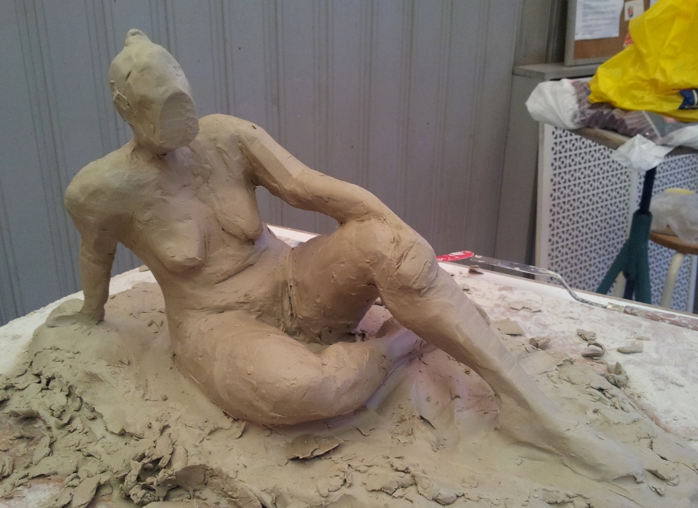 Jag ska jobba med skulpturen en gång till sen får den torka och sedan ska den brännas. (Jag uppskattar sannolikheten för att den överlever torkning och bränning till 0,2.)