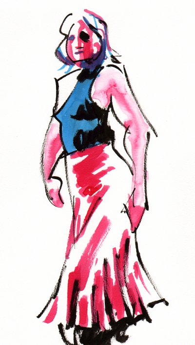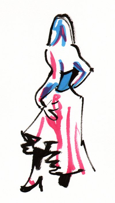 Sedan bytte hon till lång kjol och klackar...