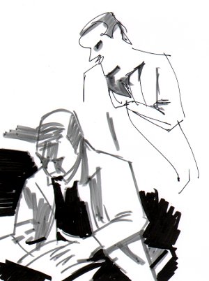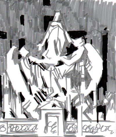 Innan konserten började så gjorde jag en teckning av statyn vid altaret. Den föreställer Maria Magdalena som hålls uppe av tre änglar.