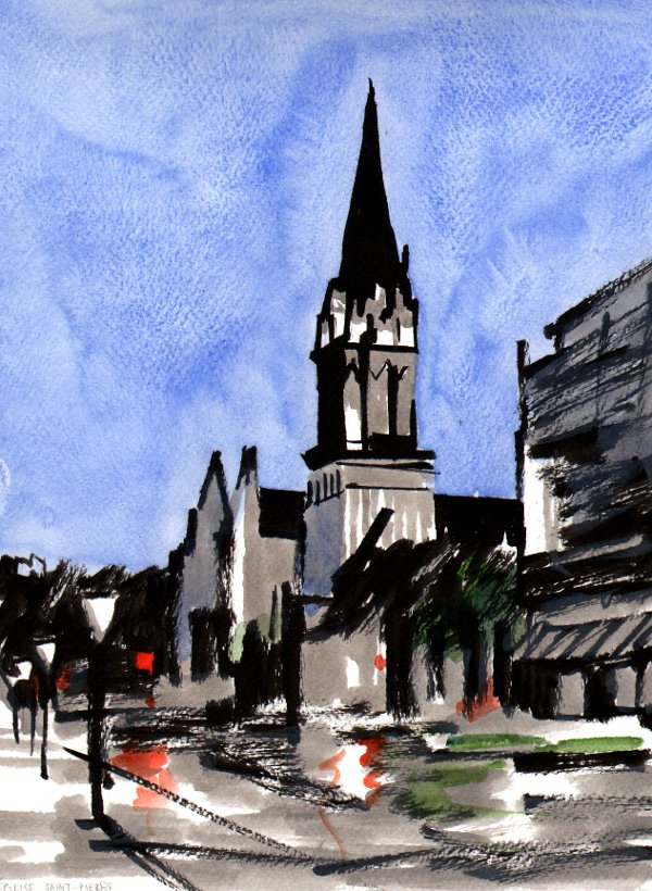 Église Saint-Pierre, tusch och akvarell