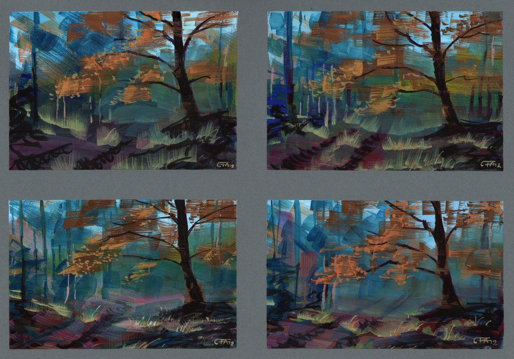 Jag målade fyra versioner samtidigt på samma papper och valde ut den jag tyckte blev bäst.