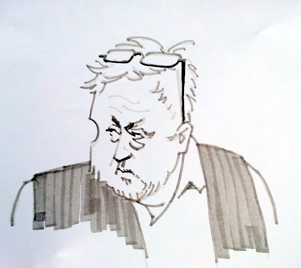 När jag ska rita av någon så antar jag omedvetet samma ansiktsuttryck som mitt motiv¹. Detta kan vara ett problem. I fallet Leif GW Persson så fick jag rejäl huvudvärk efter att ha suttit och kisat och rynkat ögonbrynen i ett par timmar. Undrar om GW själv lider av samma besvär. Det skulle i så fall förklara en del.