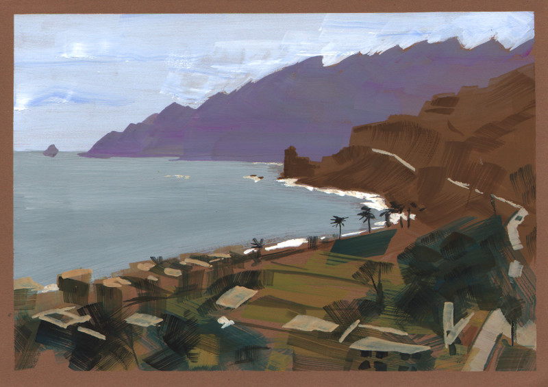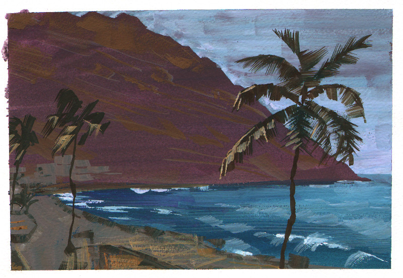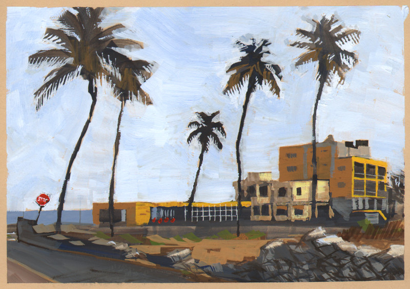 Utsikt från hotellfönstret på Hotel Paul Mar, gouache på färgat papper.