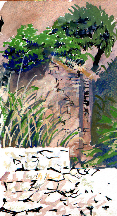 Byggnad i Ribeira do Paul, tusch och akvarell