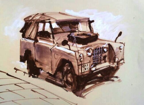 Land Rover på Brännkyrkagatan. Ägaren höll på att lasta in möbler medan vi målade.