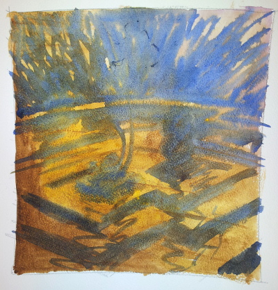 Detaljerad teckning på kalkerpapper, som jag sedan överförde till två akvarellpapper.