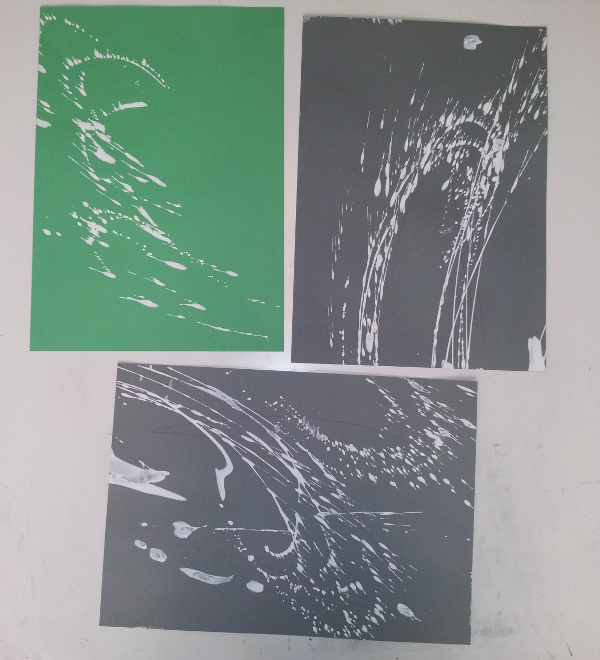 Jag hade bestämt mig för att stänka vit färg på målningen efter att jag var klar med bakgrunden. Det var lite nervöst så jag övade först.