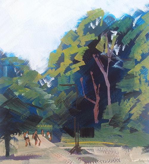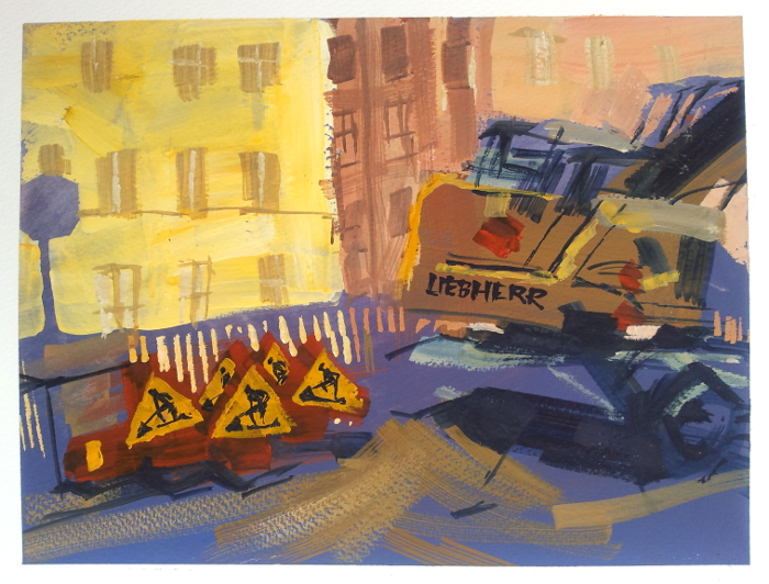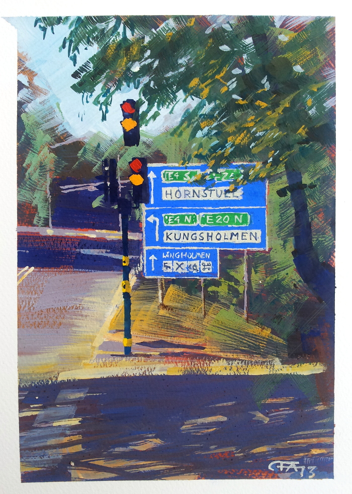 Strandpromenaden nedanför Södersjukhuset. Det fanns ett café där i en turkos husvagn och flera färglada parasoller, men de packade ihop innan jag hann måla dem.
