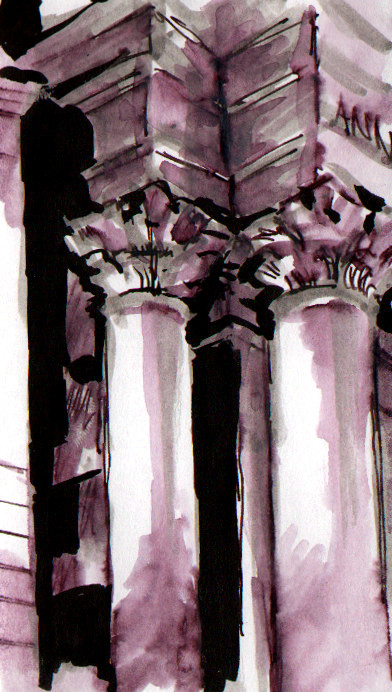 För övrigt är det knepigt att rita korintiska kapitäler. Det är liksom en hel sallad av akantusblad där uppe.