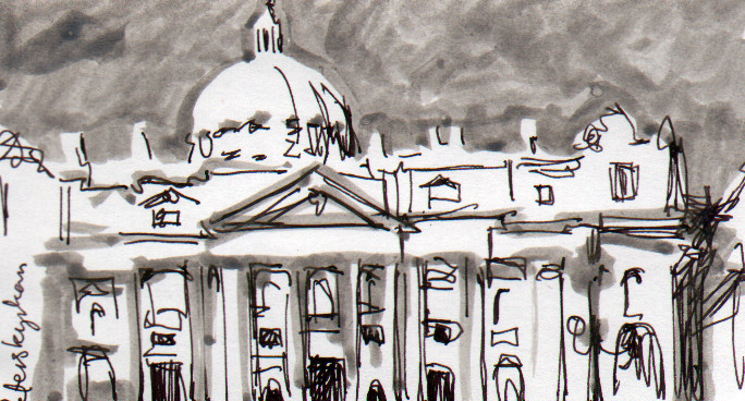Peterskyrkan tecknade jag medan vi stod och köade på Petersplatsen för att få komma in. Perspektivet blev inte så kubistiskt som jag befarade, trots att kön rörde sig ganska fort.
