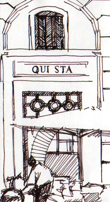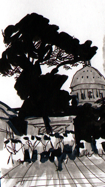 Buena sera, signore e signori! Nyss hemkommen från en weekend i Rom tillsammans med min far och min bror. Naturligtvis tecknade jag en del, men kände inte för att släpa runt på hela målarlådan, så det fick räcka med tusch och reservoarpenna. I min axelväska fanns det bara plats för ett skissblock med papper stora som hundrakronorssedlar, fast mindre.
