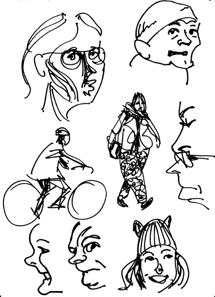 Jag har hittat en penna som jag älskar (Pilot V Sign Pen) och skissblocken har förbrukats i rasande takt senaste dagarna. Jag tycker det är kul att rita folk jag ser på stan, i tunnelbanan och när jag sitter och käkar lunch. Här är ett axplock.
