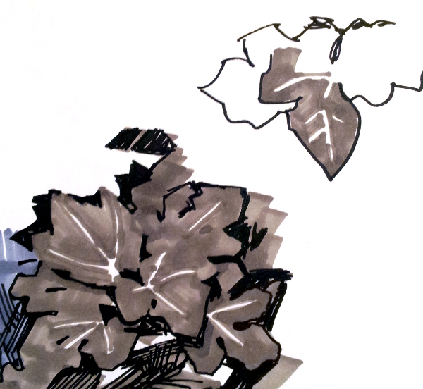 Vi besökte Edvard Andersons växthus i Bergianska trädgården i söndags, min oas i höst- och vinterkylan. Tecknade lite fikonlöv medan vi satt och fikade.