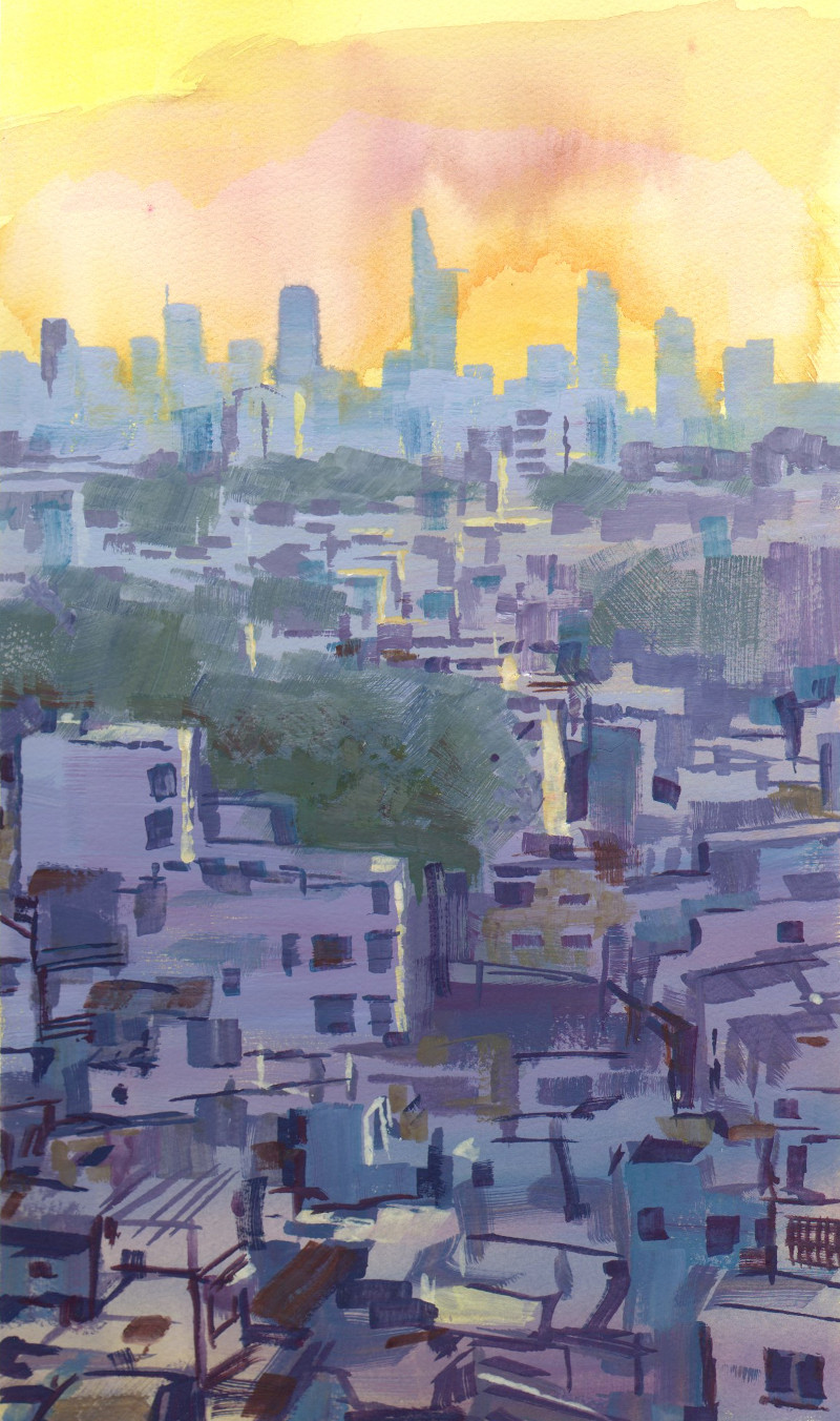 Den här bilden målade jag ifrån vårt hotellfönster i Windsor Plaza Hotel i den kinesiska stadsdelen Cholon.