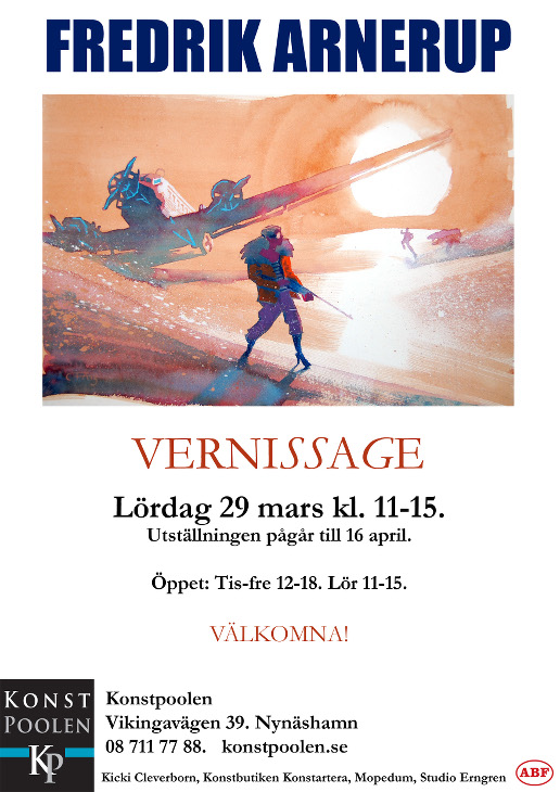 Lördag 29 mars har jag vernissage för min separatutställning på Konstpoolen i Nynäshamn, ett datum som av en slump sammanfaller med treårsjubileumet för Satsumasbloggen. Jag kommer att ha med ett femtiotal målningar från de senaste åren. Det mesta kommer att ha figurerat på bloggen, men det kommer även att finnas några verk som inte varit med.