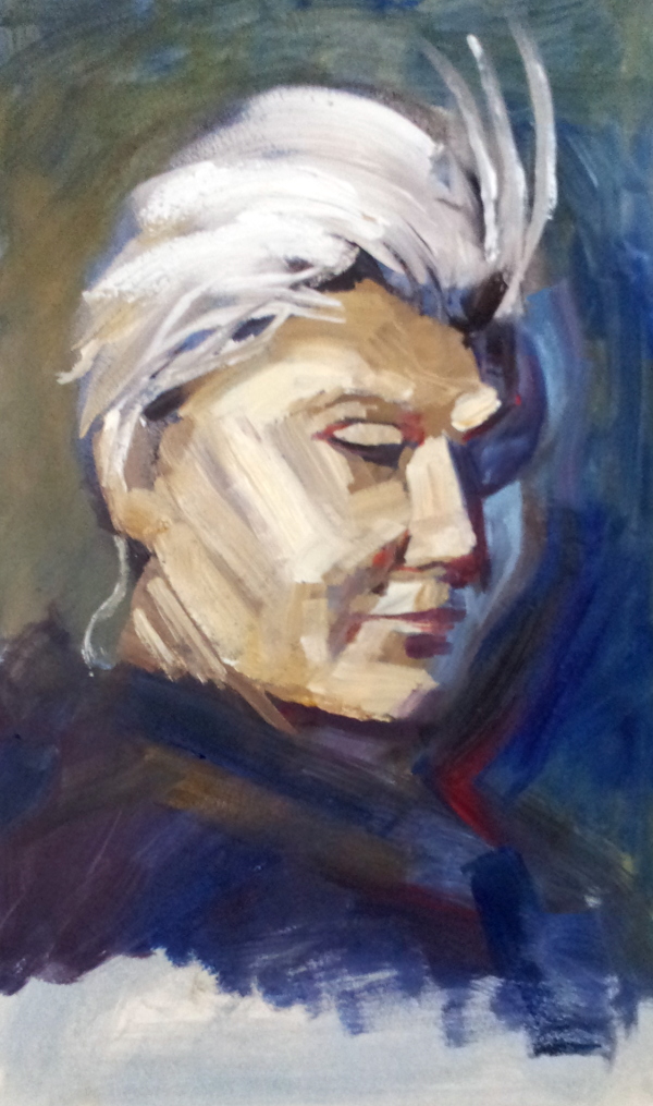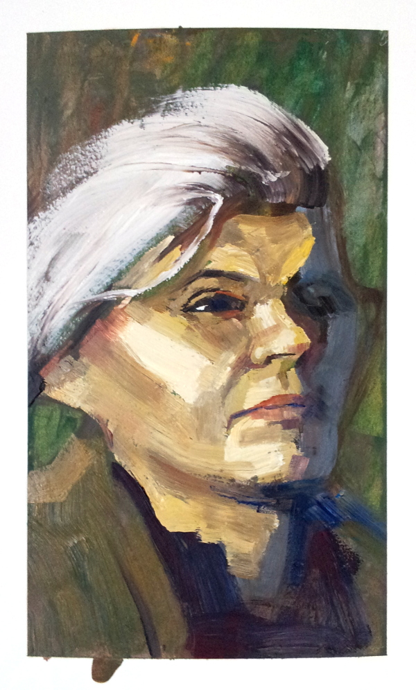 Idag var jag på Folkkulturcentrum i Hjorthagen och målade porträtt. Det var ett tag sedan jag målade porträtt i olja och det tog en stund att komma in i det igen. Den första målningen av Monika blev misslyckad, så jag skrapade bort den och började om. Den andra blev bättre.