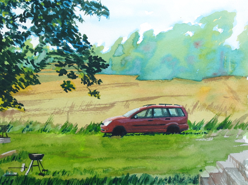 akvarell bil Björkö landskap plein air Roslagen Bild