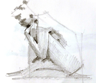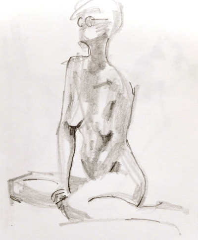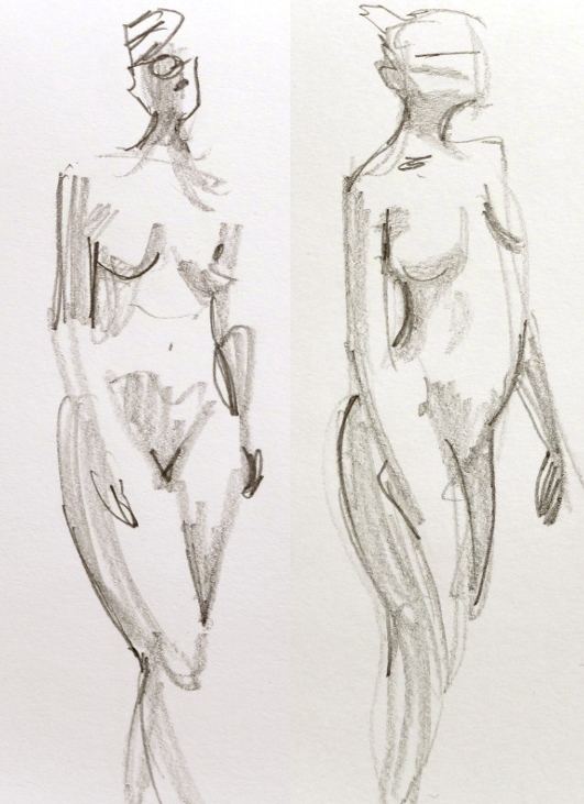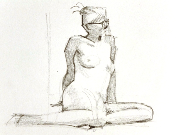 För mig blev den här krokiomgången lite back to basics. En blyertspenna och ett pyttelitet ritblock. Inget sudd, ingen tusch, akvarell eller pastell. Jag fick låna en pennvässare i pausen.