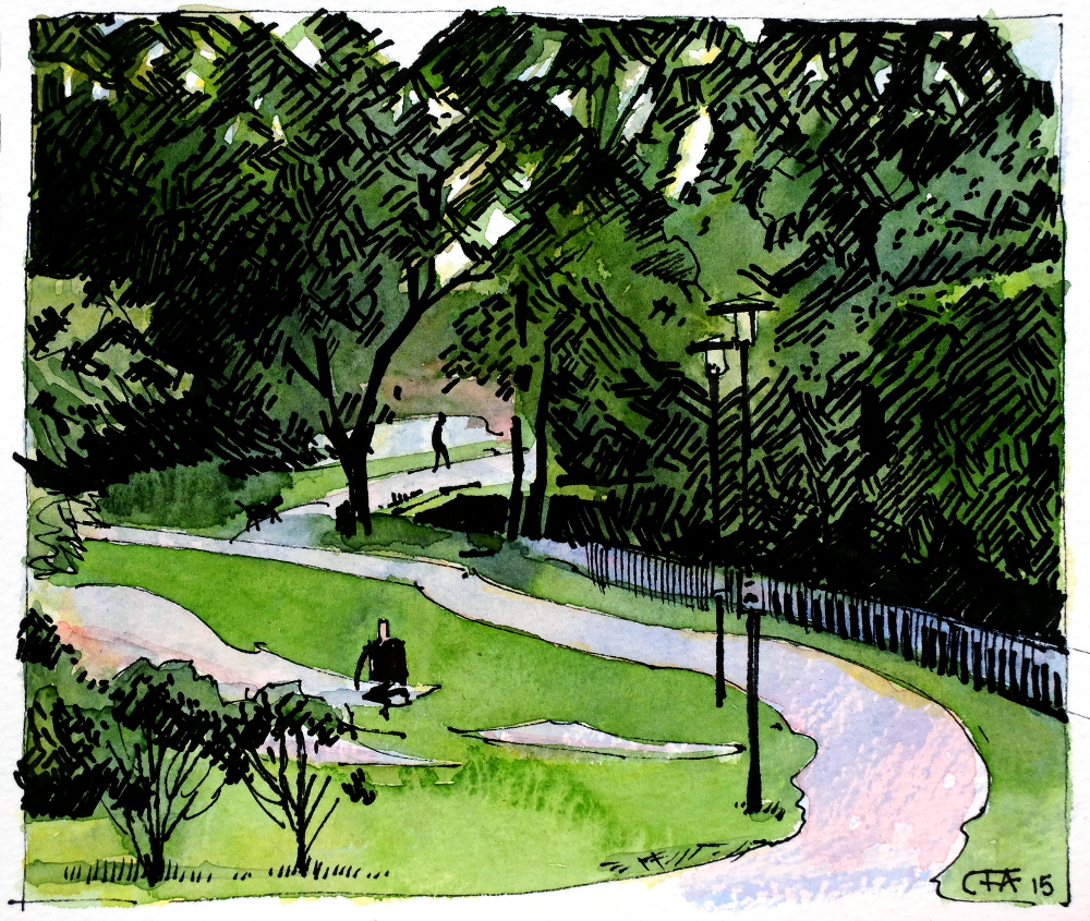 akvarell Hornstull park Stockholm träd