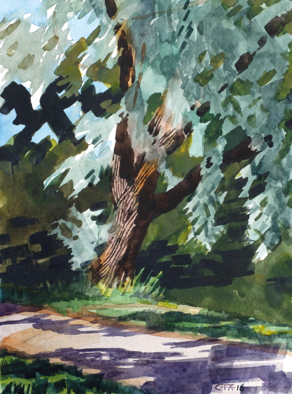 akvarell Hägersten plein air skugga Stockholm träd Bild