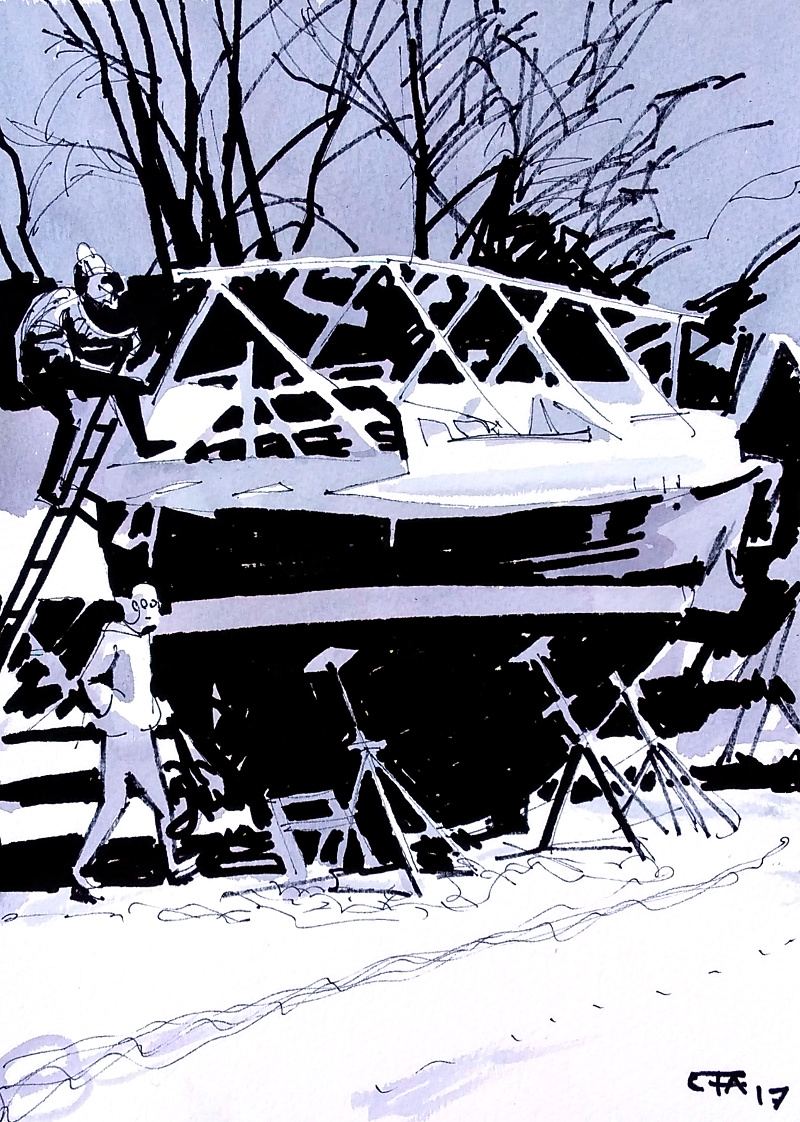 Idag var Urban Sketchers Stockholm på Långholmen och tecknade. Vädret var strålande och vårrustningen av båtarna var i full gång.