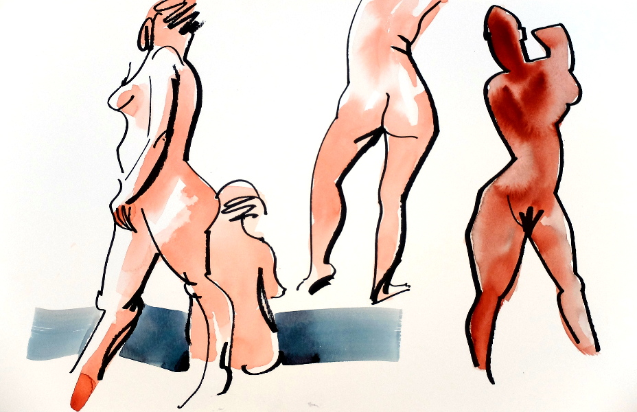 akvarell kroki markers pastell porträtt Skarpnäcksateljén tusch