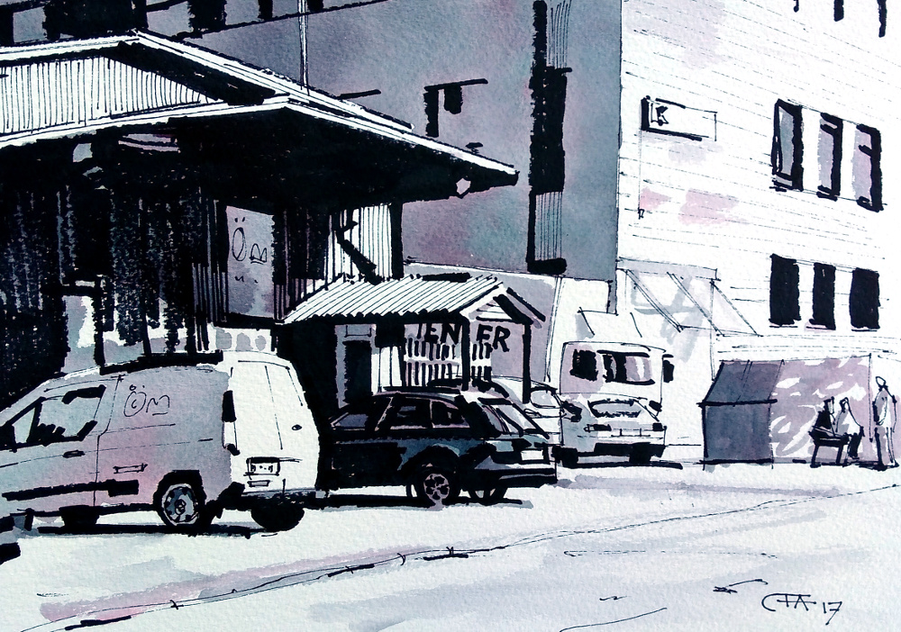 akvarell Aspudden Örnsberg bil Hägersten industri lastbil markers plein air Stockholm