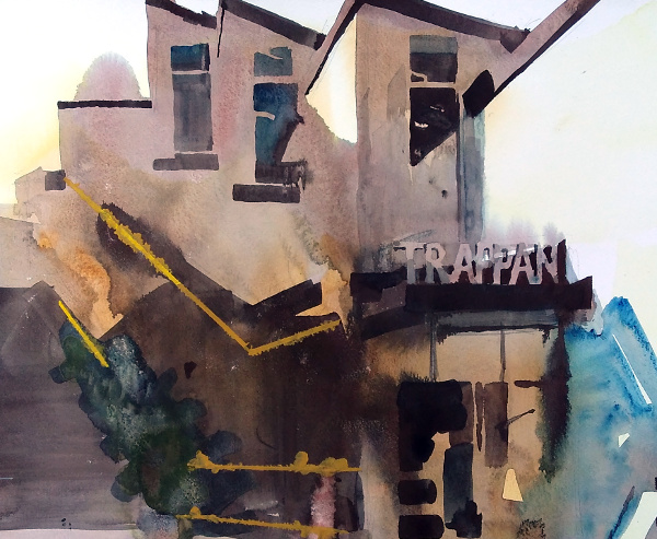 akvarell arkitektur gouache plein air trappa Urban Sketchers Vällingby