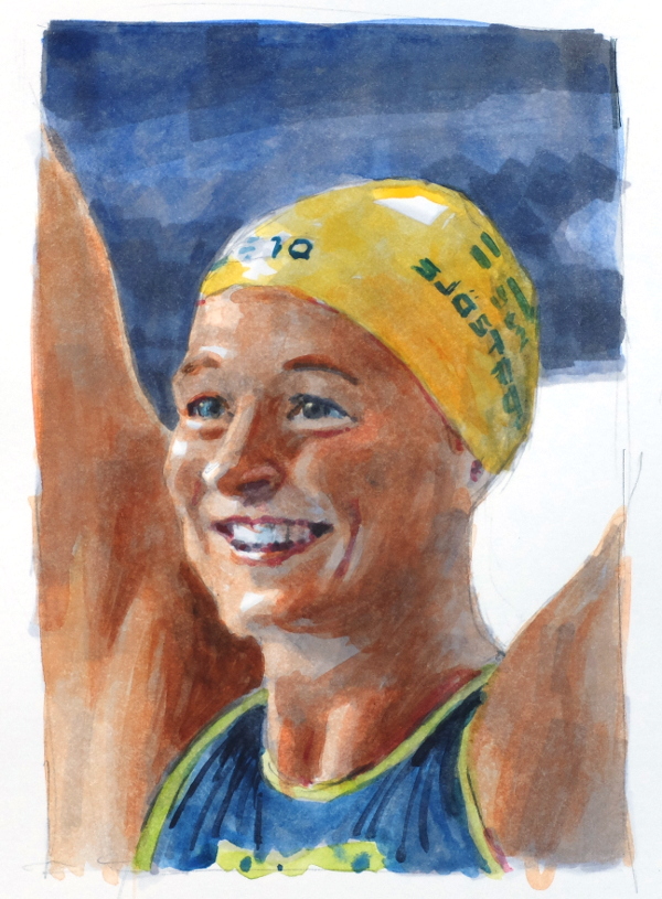 akvarell bristol board kändis markers porträtt simning sport teknik