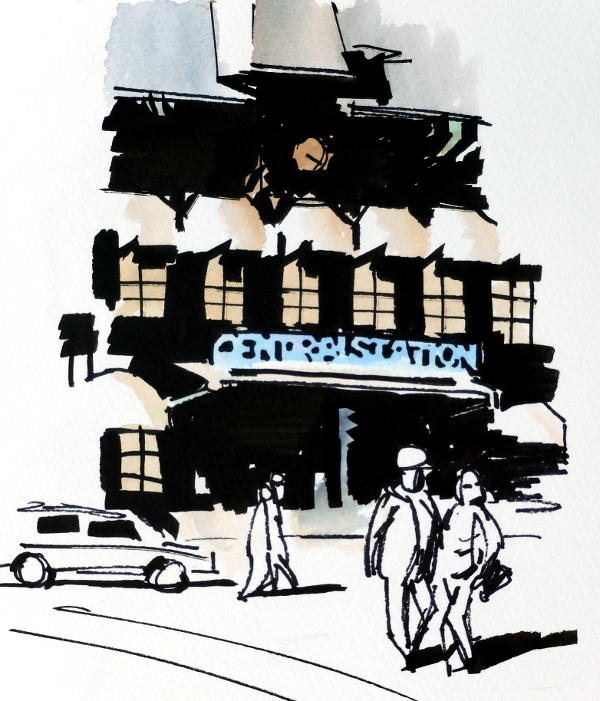 akvarell akvarellpennor bil Göteborg markers plein air tåg träd