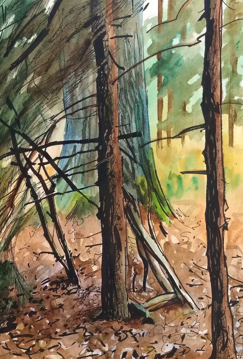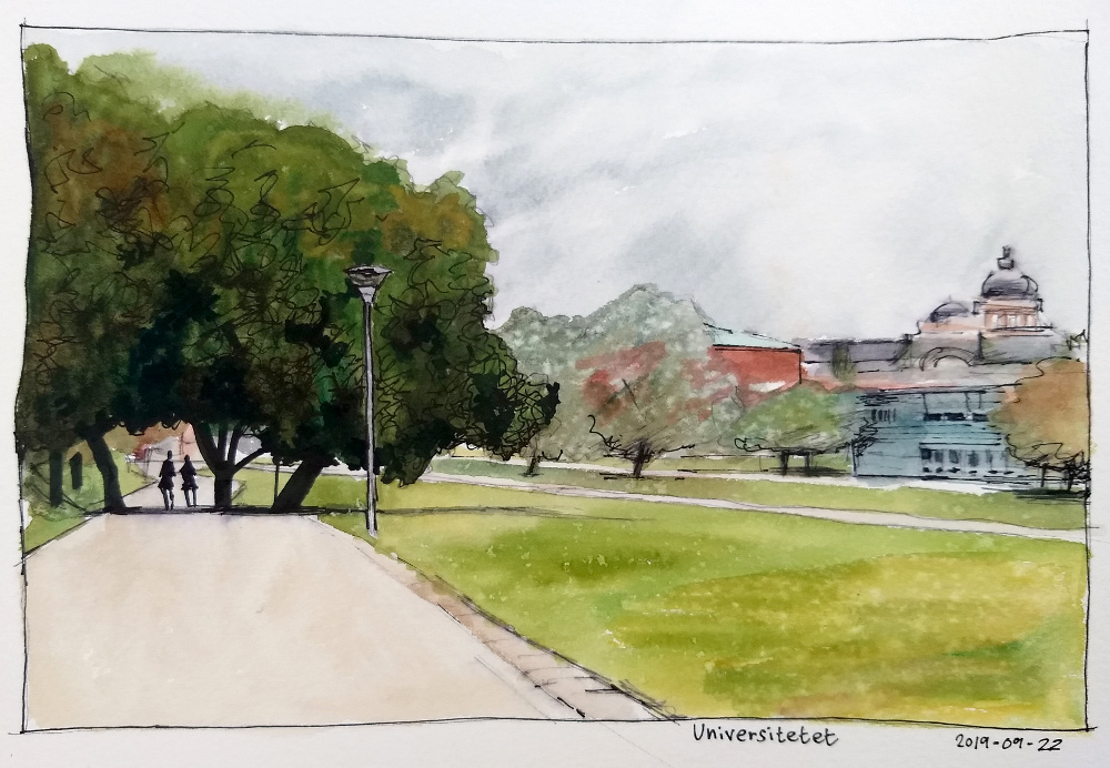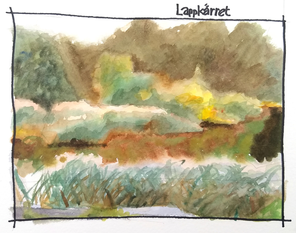 akvarell Frescati höst landskap Lappkärret markers Naturhistoriska Norra Djurgården plein air sjö Stockholm Stockholms Universitet träd