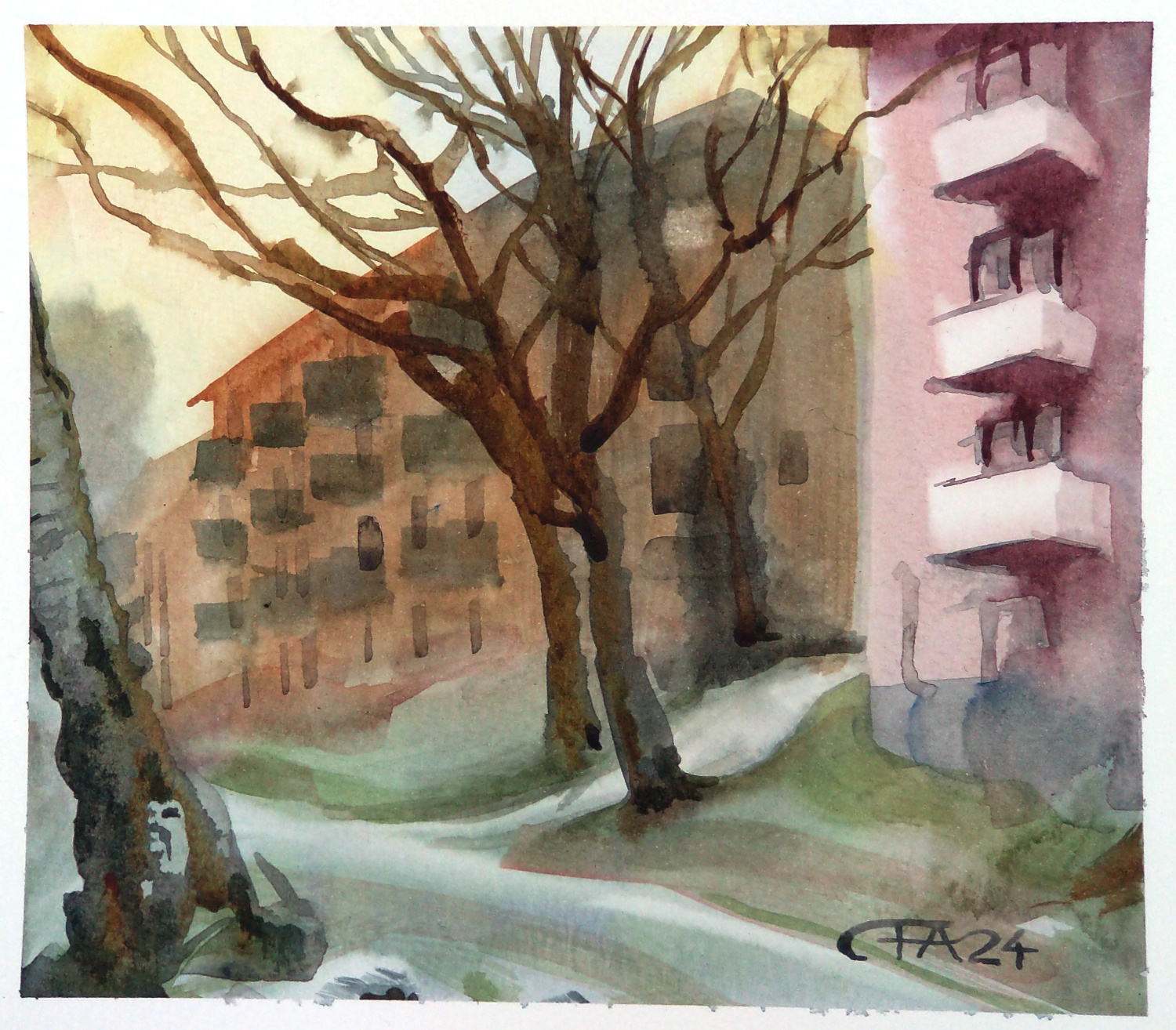 Eller så sitter man kvar på en bänk vid Aspuddsstigen och målar av husen på Torsten Alms gata.